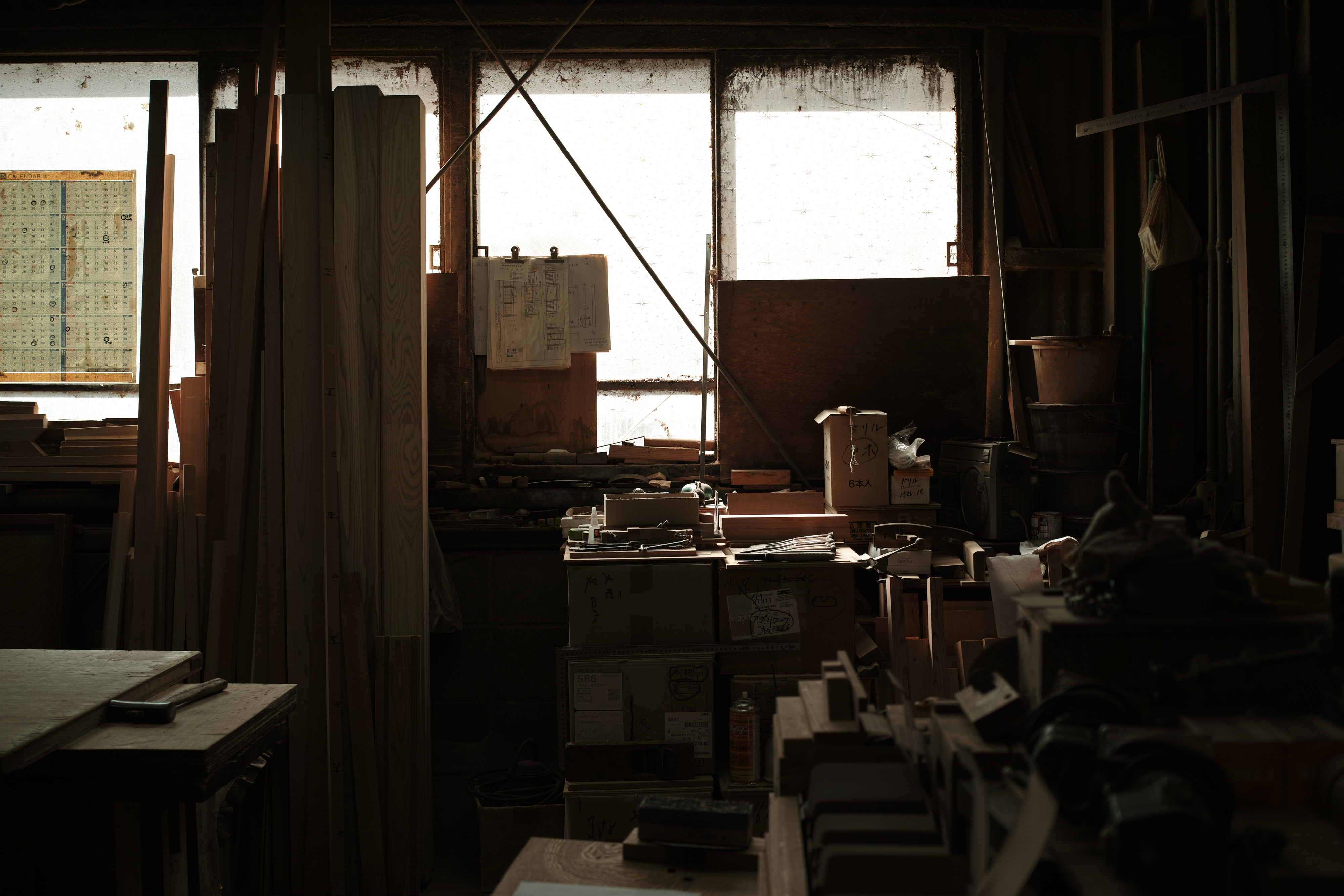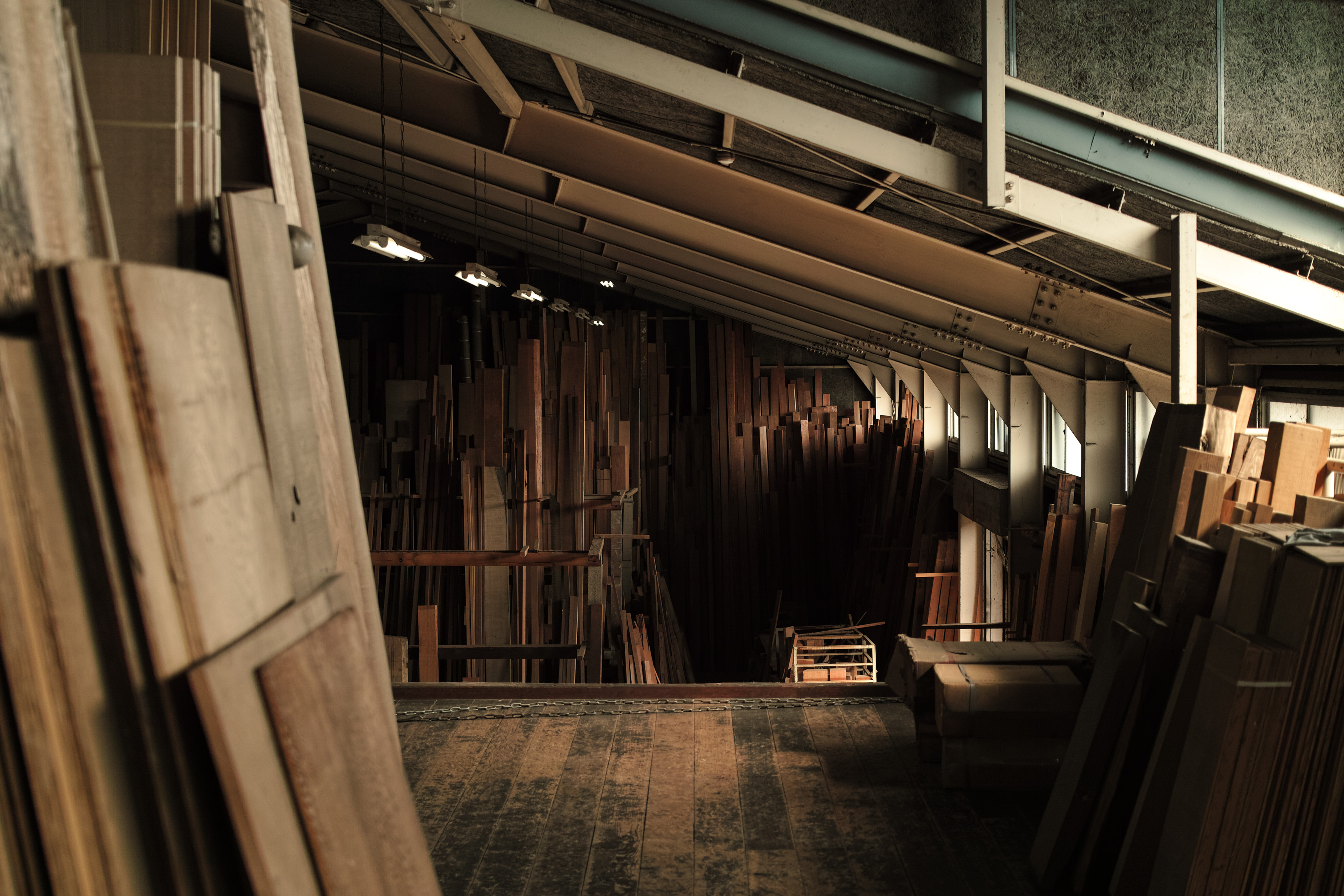 工場(こうば)には宝のような銘木が所狭しと保管されていて、その内容や数に圧倒されます。